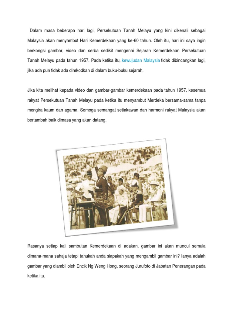 Persekutuan Tanah Melayu mencapai kemerdekaan pada 31 Ogos. Malaysia dan masa hadapan tajuk. Menghayati sejarah perjuangan para pejuang negara.